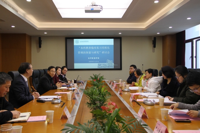 1月22日上午,医学影像学院在南苑影像楼306会议室召开本科教育临床实习同质化管理的探索与研究研讨会,副校长唐红梅出席会议并讲话。来自复旦大学附属华山医院、上海交通大学医学院附属瑞金医院、上海交通大学医学院附属新华医院、上海交通大学医学院附属仁济医院、上海市第六人民医院、上海市第十人民医院的专家,教务处、医学影像学院相关负责人及教师代表参加会议,会议由医学影像学院党总支书记、副院长刘红主持。