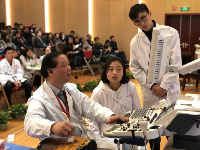 3月26日,2019年教职工培训之课程思政第二讲暨医学影像学院教育思想大讨论之《肝超声检查》示范课在北苑1号楼200人报告厅进行。校教学名师、医学影像学院教授周进祝老师主讲,我院40位教职员工与来自其他学院(部、中心)、多个职能部门以及附属医院共325名教师参加。