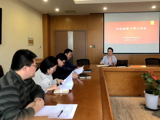 11月21日中午,医学影像学院党总支在南苑影像楼310会议室举行纪检监察干部工作会,党总支书记刘红、教工第一党支部纪检委员魏玲、教工第二党支部纪检委员李哲旭、特约监察员孙九爱参会,会议由专职党建员、学生党支部纪检委员谭松珊主持。