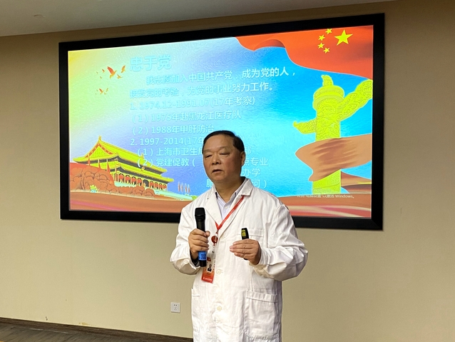 会上,周进祝教授首先回顾了自己1974年毕业留校后,积极向党组织靠拢的经历,他以一名共产党员的标准严格要求自己,曾参与1975年上海市第三批赴黑龙江医疗队和1988年上海市甲肝防治工作。经过党组织17年的考察,在1991年7月光荣加入中国共产党,在成为中共党员后,他默默耕耘,始终如一,出色地完成教学和管理工作。1997年至2014年担任基层党组织书记期间,他带领党支部荣获上海市卫生局先进党支部称号,在日常工作中以党建促教,带领团队成功申报“085”重点专业,同山东聊城和云南红河开展专业合作和对口支援工作。