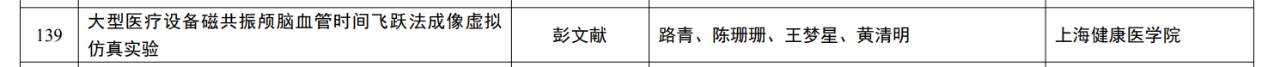 8月21日,教育部公布《关于第三批国家级一流本科课程认定结果的公示》。彭文献老师主讲课程《大型医疗设备磁共振颅脑血管时间飞跃法成像虚拟仿真实验》获评国家级一流本科课程,路青、陈珊珊、王梦星、黄清明四位老师也参与了本课程建设。