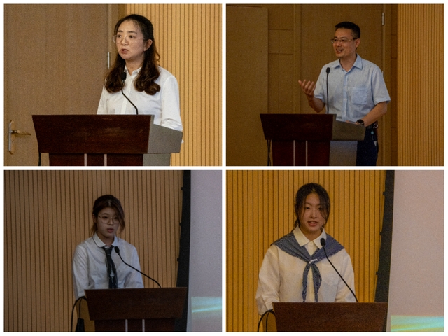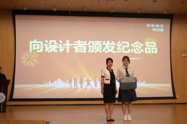 典礼伊始,师生共同唱响中华人民共和国国歌。随后,智能影像工程教研室专任教师陈珊珊、95级医用放射线设备专业毕业校友、现任上海西门子医疗器械有限公司亚太区教育服务中心教育培训经理白冈,先后寄语新生,鼓励大家应该努力把握来之不易的学习机会,勇敢追求自己的梦想,未来在大影像界做出各自的贡献。学院院训、院徽发布仪式将开学典礼推向高潮。学院党总支书记朱清宣读并展示院训院徽,向设计者颁发纪念品。朱清强调,院训、院徽体现并象征了“理性专业+温暖仁心”的学院气质和影像人精神内核,希望大家以院训院徽传递的精神为指引追求卓越、勇攀高峰。2023 级九院联合培养班崔朱玮同学作为院训院徽的设计者向新生介绍了她的设计理念和创作过程,饱含对学校和学院的深厚感情。2025 级智能影像工程2班叶文渊作为新生代表发言,自信昂扬、意气风发,她讲到:“我们将以‘察微见著’的态度钻研影像技术,以‘影鉴仁心’的信念守护生命健康,承担起新时代影像人的责任与使命,做一名优秀的基层卫生健康的守护者。”