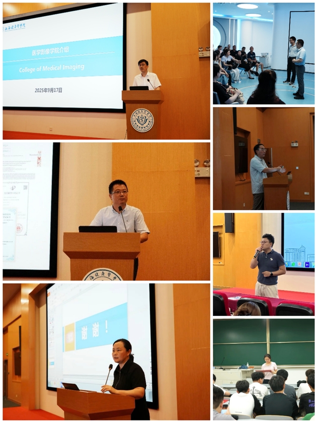 会上,医学影像学院党总支副书记、院长李晓欧详细介绍学院发展历程、专业特色、师资力量以及人才培养规划;副院长吴忠航围绕学科建设成果、国际交流与合作、学生考研等方面,向家长做进一步介绍;乔慧敏向家长介绍了大学学业特点、校园文化生活以及学生日常管理等。随后,家长们在各分会场与专业主任、副主任、教师代表进行深入交流。彭文献、程敬海两位主任为家长们深入解读医学影像技术和智能影像工程两个专业的课程设置、培养方向以及就业去向等。与此同时,各班级辅导员迎新主题班会也同步进行。班会上同学们开展了有趣的破冰活动、彼此增进了解、消除陌生感,辅导员也向新生介绍了大学生活,勉励大家以积极主动的心态融入集体、规划好学业,严格遵守大学生日常行为规范,做全面发展的有志青年。