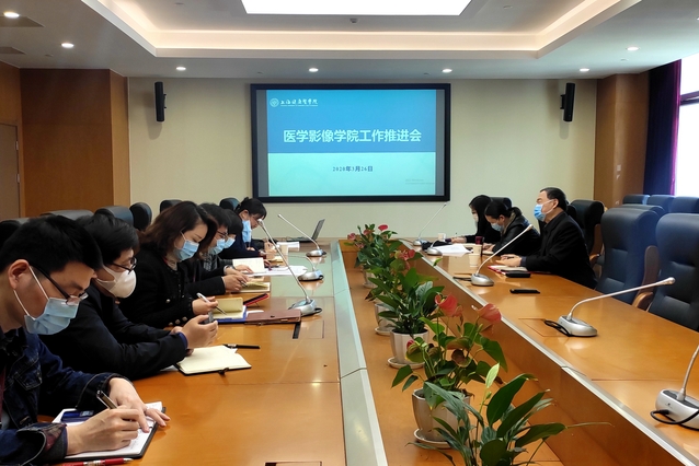 3月26日下午,医学影像学院在南苑影像楼306会议室召开新学期工作推进会。校长黄钢、人事处处长金东英、教务处处长王莉、副处长蒋淑敏莅临指导,医学影像学院党政领导、教研室主任、院办主任和教师代表参加会议,会议由院长徐小萍主持。