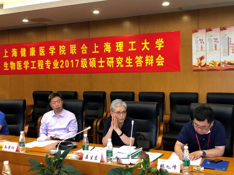 6月1日下午,上海健康医学院联合上海理工大学2017级生物医学工程专业硕士研究生答辩会在南苑4号楼306会议室举行。答辩委员会主席由聂生东教授担任,黄钢校长、刘建军教授、宋少莉教授、孙安阳教授、何培忠教授、姚旭峰教授、王云光副教授、孙九爱副教授,医学影像学院院办副主任王瑾、答辩委员会秘书周敏雄博士与会。
