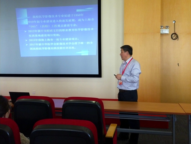 本次专业介绍面向2017级全体本科及专科学生,分为放射治疗专业、影像设备专业、影像技术(本科)专业及影像技术(高职)专业四个场次,各专业教研室主任以PPT讲解的形式向同学们介绍了本专业的发展历史、师资力量、专业课程等内容,着重介绍了专业对口就业、升学等同学重点关心的问题,分析了现阶段及未来几年内的就业形势及对人才的要求,鼓励新生及早确立学习目标,珍惜学习机会,在大学期间为以后的人生规划打下坚实的基础。专业介绍结束后,各专业同学分批次对影像实训室进行了参观。三位教研室主任、实训中心主任俞洁莹、实训中心教师凌荣华为同学们介绍了64排CT机、胃肠机、DR模拟操作机等先进的实训设备,同学们很受鼓舞,纷纷表示要珍惜在校学习机会,不辜负老师和家长的期望。
