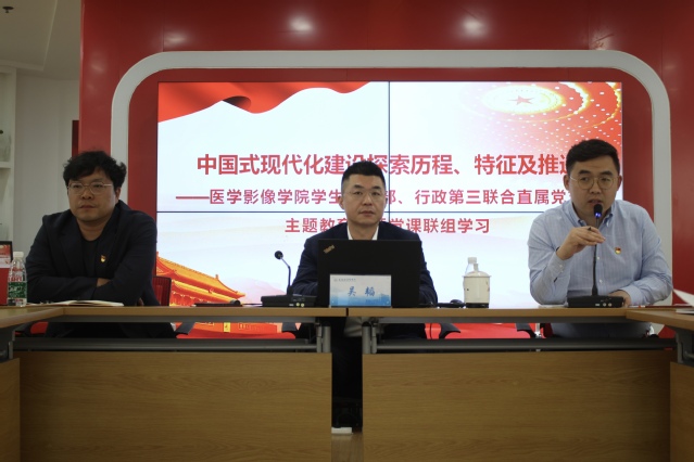 为深入开展学习贯彻习近平新时代中国特色社会主义思想主题教育,努力在以学铸魂、以学增智、以学正风、以学促干上取得成效,5月4日下午,医学影像学院学生党支部、行政第三联合直属党支部开展主题教育专题党课联组学习,吴韬校长为师生党员讲授题为“中国式现代化建设探索历程、特征及推进”的专题党课。