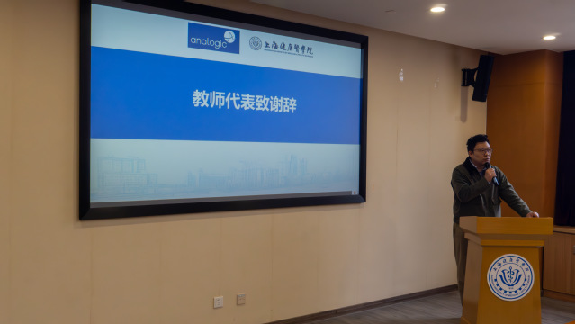 仪式上,李晓欧与黄河清先后致辞。李晓欧代表学院向长期以来关心支持学院教育事业发展的安络杰医疗器械(上海)有限公司表示感谢!他讲到,“企业设立奖学金和奖教金,不仅是对优秀师生物质上的奖励,更是对他们勤奋治学、潜心育人的精神嘉奖,是企业在自身发展的同时,积极履行社会责任、回馈社会、支持教育事业的生动体现。”学院对企业的这份慷慨与远见深感敬佩,未来将更加坚定为行业培养优秀人才、办好人民满意教育的信心与决心。黄河清介绍了企业发展蓝图与未来人才需求,也回顾了与学院合作的历史,他代表企业高度认可学院人才培养质量,也表达了继续深化校企合作、共育行业人才的诚挚意愿。