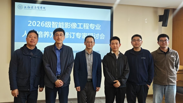 4月20日上午,医学影像学院在306会议室召开医学影像技术与智能影像工程两个专业2026级人才培养方案修订研讨会。学院院长李晓欧出席会议,医学影像技术专业主任彭文献、智能影像工程专业副主任孙九爱及相关教研室教师参加会议。会议邀请了来自临床与企业一线的专家共同参与,包括上海医学会影像技术学会前任主任委员东方医院放射科路青主任,现任主任委员上海市第六人民医院放射科胡顺东副主任,公利医院放射科黄丙仓主任,以及上海联影医疗科技股份有限公司MR高级技术支持经理宋珑、安络杰医疗器械(上海)有限公司工程经理郁明祥,为专业建设与人才培养提供多维度指导。