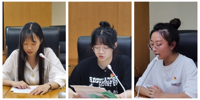 宣誓后,朱诗音、赵一平、郁佳琦作为新党员代表进行发言,她们表示能够在中国共产党成立一百周年之际,加入这个伟大且充满力量的组织,感到无比骄傲与自豪。由衷感谢党组织的教导与培养,同时也感谢老师们的关怀与帮助。党员这一身份,既是一份荣誉,更是一份责任。在未来的日子里,将用实际行动去践行今天的誓言,在党组织的领导下继续努力,自觉加强党性修养,牢记党的宗旨,勤于钻研、开拓进取、乐于奉献,争做同学的榜样与领头人,不论是在学习、工作还是其他方面,展现先锋模范作用,永远保持共产党员的先进性,担负起党员的责任。